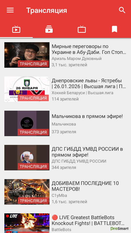 ● Смотреть прямые трансляции
