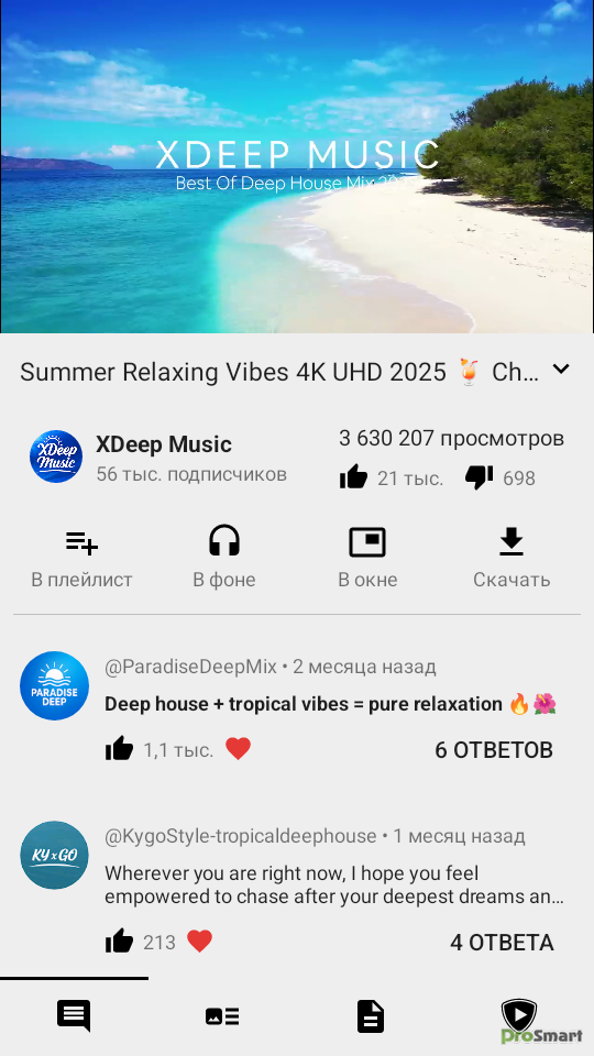 ● Просматривать видео и аудио внутри канала