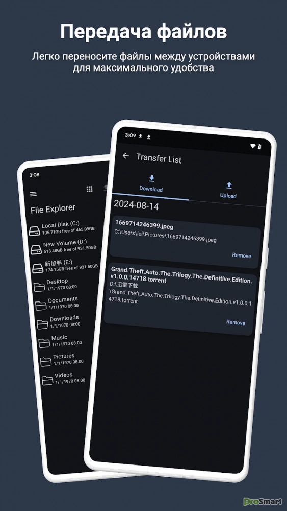 * Простая передача файлов: быстро и удобно обменивайтесь файлами между устройствами.