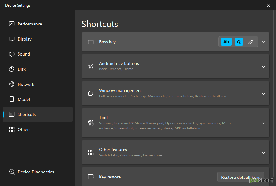 "Клавиша босса": Функция быстрого скрытия/сворачивания окна эмулятора.