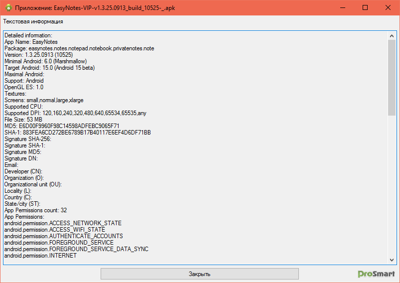 Просмотр информации об APK.