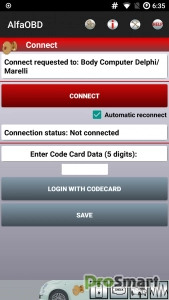 Подробную информацию о настройке подключения к интерфейсу и автомобилю см. в справке приложения, доступной на http://www.alfaobd.com/AlfaOBD_Android_Help.pdf.