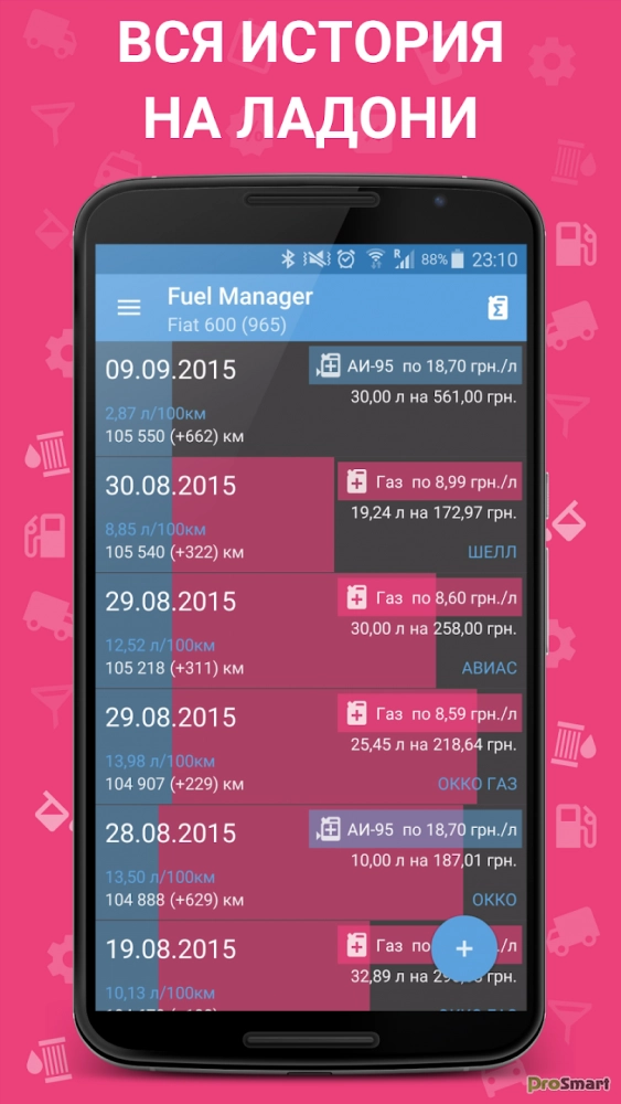 Fuel Manager поможет контролировать затраты на топливо и понять, когда они превысили бюджет. ПЕРВОЕ ПРИЛОЖЕНИЕ В GOOGLE PLAY С ПОЛНОЙ ПОДДЕРЖКОЙ ДВУХТОПЛИВНОГО РАСЧЕТА РАСХОДА ТОПЛИВА (ГАЗ + БЕНЗИН)