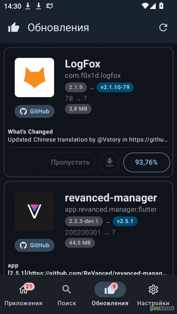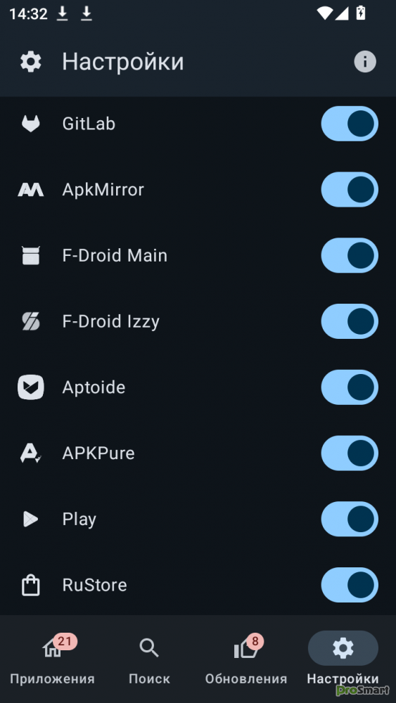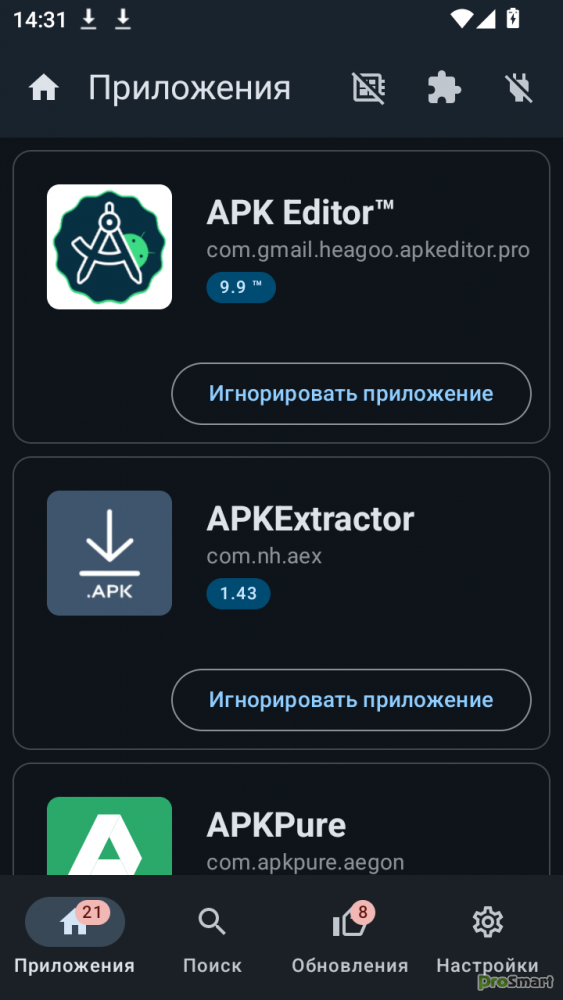 Проверка обновлений из 9 источников (GitHub, GitLab, F-Droid, IzzyOnDroid, Aptoide, APKPure, APKMirror, Google Play, RuStore) с загрузкой и установкой. APKUpdater — приложение для проверки обновлений всех установленных приложений на устройстве. Агрегирует данные из множества источников, позволяя находить обновления даже для приложений, установленных не из Google Play.Разработчик: Dmitry_N