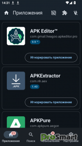 Фильтр понижения версии — скрыты поддельные «обновления» от OEM-приложений с более низким именем версии.