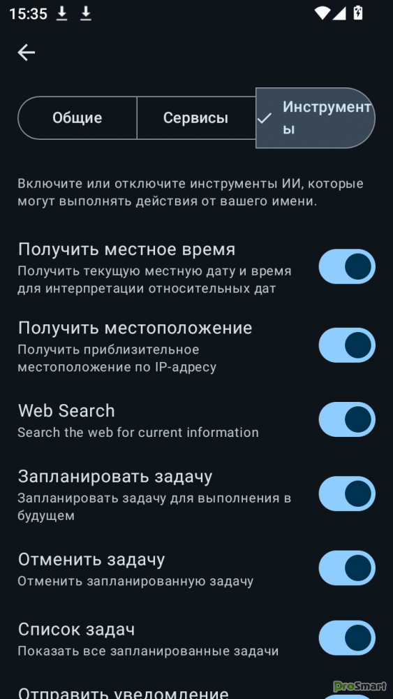 Все инструменты можно включить или отключить в настройках.